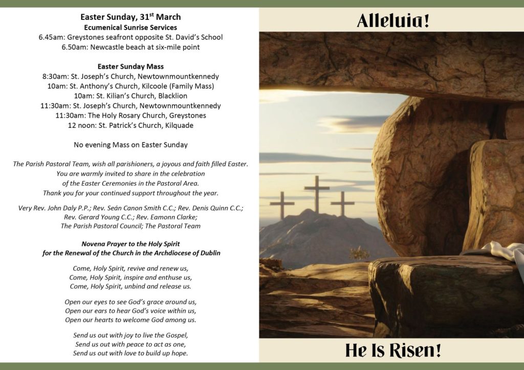 The Holy Week and Easter Schedule Card is available in all churches. This card is inside the Easter Offering envelope. Please take a copy home and we look forward to you participating in the Holy Week and Easter Celebrations.
